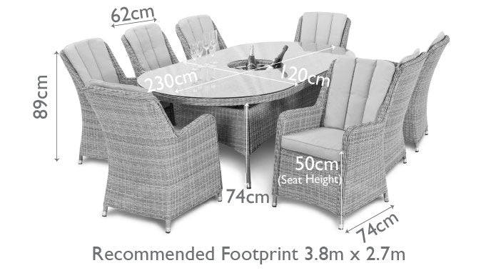 Malibu 8 Seat Oval Rattan Dining Set in Light Grey