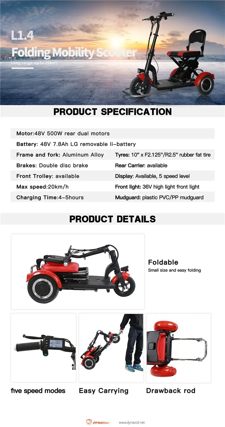 Product name elderly electric tricycle lithium battery folding mobility scooter