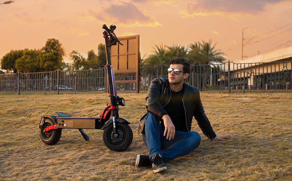 Single and dual drive mode driving experience scooter: the rider can switch between the two modes ECO mode and dual drive mode. The driving range of the scooter depends on many factors: road conditions, weather, rider's weight, frequent braking and acceleration, single/dual drive, speed 1/2/3, etc.