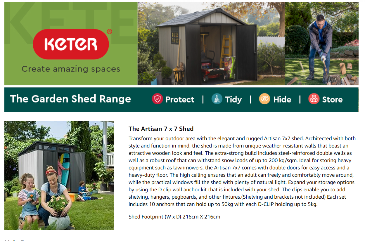 - A premium ideal outdoor storage solution for all garden tools and equipment, garden furniture including BBQ's, bicycles and DIY tools