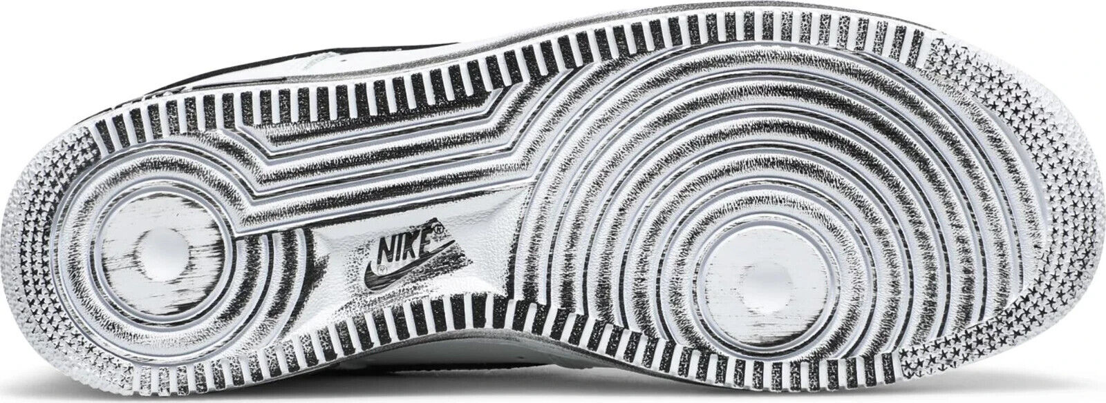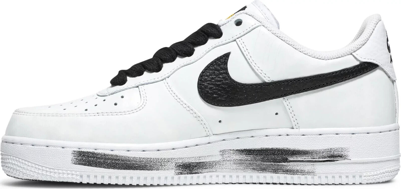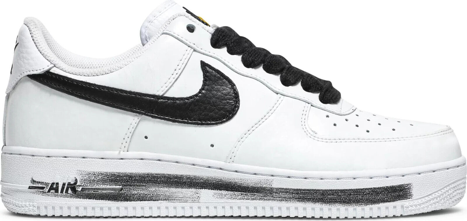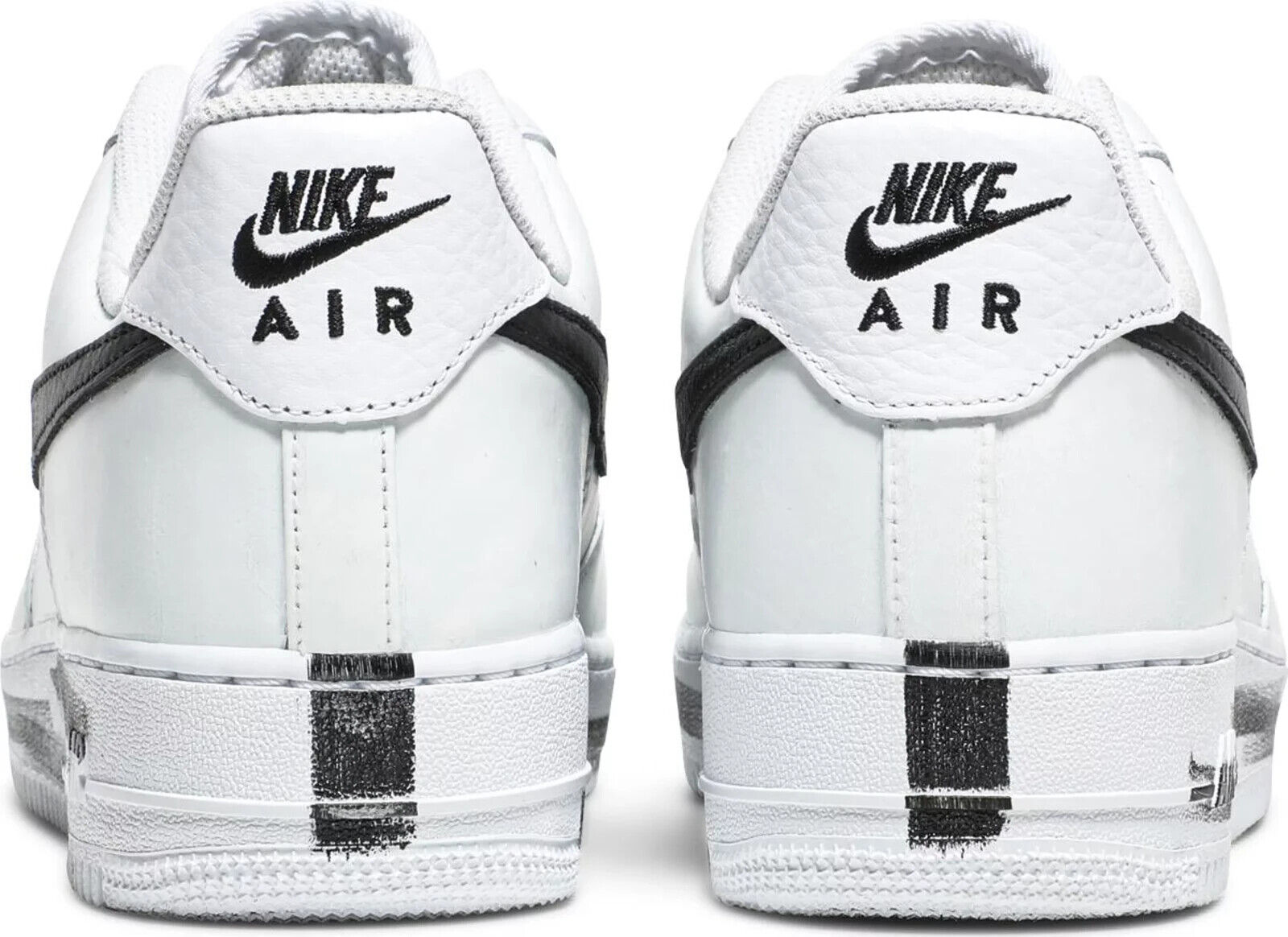 Year Of Release: 2020The G-Dragon x Nike Air Force 1 ‘07 ‘Para-Noise 2.0’ is the follow-up colorway to the 2019 Air Force 1 collaboration undertaken with the Korean hip hop star. This pair essentially flips the color blocking of the original, featuring a black Swoosh on a white leather upper, its top layer designed to wear away and reveal custom artwork created by G-Dragon. Additional flourishes include decorative eyelet pins, an embroidery daisy atop the tongue and crude brushstroke effects on the midsole. -